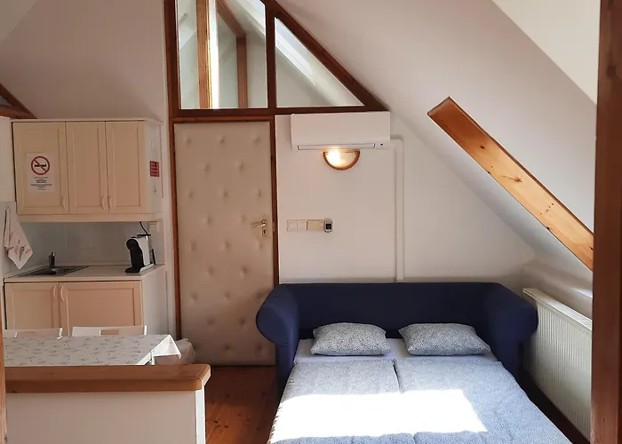 El Mon-Csa Studio Apartman Balatonfüred goza de vistas al jardín y se encuentra a tan solo 1 km del Museo de Vela Vitorlázeum.